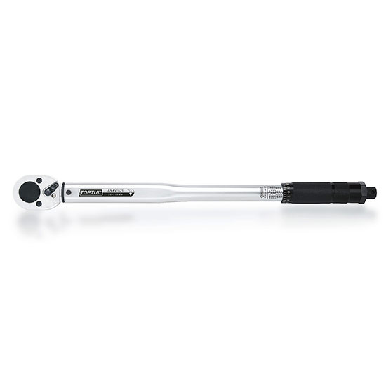 ترکمتر جغجغه ای دسته فلزی تاپ تول ساخته شده از فولاد آلیاژی کروم مولیبدن با مقاومت بالا و مستحکم با مقیاس دوگانه خوانایی آسان در هر دو مقیاس Nm و Ft-Lb/In – Lb، دقت گشتاورد ± 4% (CW) و مکانیزم برگشت پذیر 24 دندانه جغجغه ای برای حرکت در جهت عقربه های ساعت و خلاف جهت عقربه های ساعت می باشد؛ دسته ضد لغزش در حین کار و مکانیزم قفل پس از تنظیم مقدار گشتاور مورد نظر، تنظیم را به طور ایمن در جای خود قفل می کند. این ترکمتر جغجغه ای با طراحی خاص دارای عمر طولانی و ابده آل برای کاربردهای مختلف خودرو و صنعتی بر اساس استاندارد DIN EN ISO 6789 آلمان در ردایو ها و سایز های مختلف مطابق جدول پایین صفحه طراحی و تولید شده است.