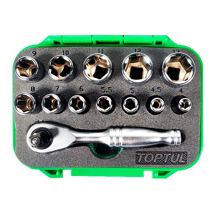 1 عدد آچار جغجغه ای مینی 60 دندانه به طول 86.5 میلیمتر دارای 12 عدد سوکت 1/4 اینچی 6 پر در سایزهای میلیمتر 13*12*11*10*9*8*7*6*5.5*5*4.5*4 جنس سوکت ها آلیاژ فولادی کروم-وانادیوم-ضد زنگ و ضد خوردگی ابعاد جعبه 37*85*115 مناسب کارهای صنعتی و تعمیراتی،مصارف عمومی،خانگی کاربرد شرکت ها، تعمیرگاهها، مکانیکها