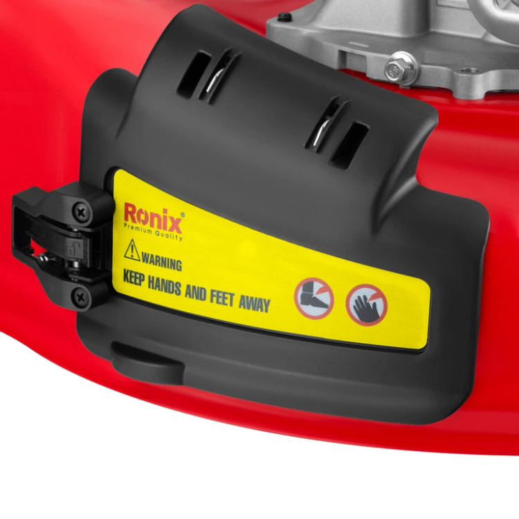 - ماشین چمن زنی رونیکس با 3 حالت طول دسته قابل تنظیم و 6 درجه جهت تنظیم شیب دسته مجهز می باشد