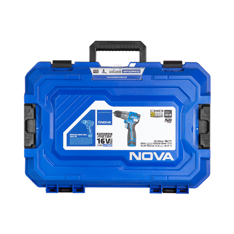 دریل پیچ گوشتی شارژی نووا 10 میلیمتری 16 ولت براشلس با کیف BMC کد 5510