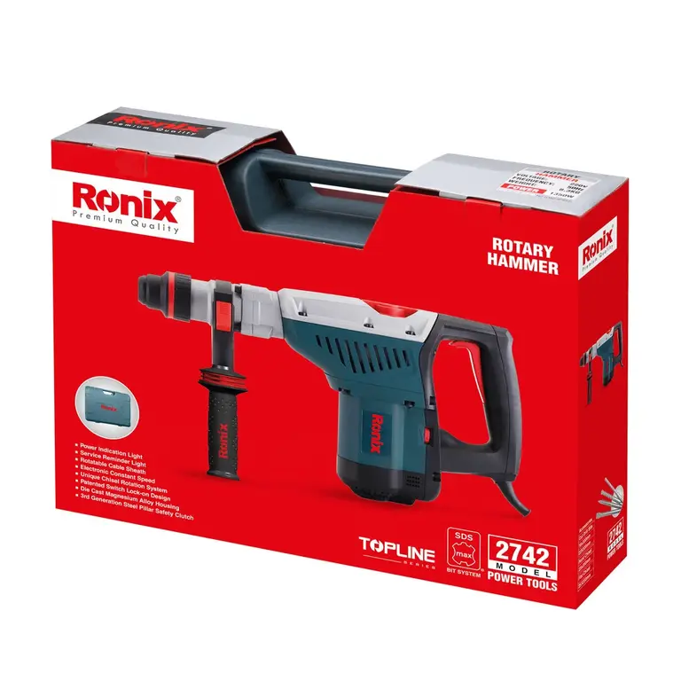 بتنکن 8.3 کیلوگرمی رونیکس مدل 2742، مجهز به یک موتور قدرتمند 1350 وات و با بازدهی بالا در دو عملکرد سوراخکاری و سوراخکاری چکشی است. سیستم تخریب سریع این بتنکن، قابل مقایسه با سوپربرندهای جهانی بوده و سرعت آن در حالت آزاد در محدوده 516-150 دور بر دقیقه قرار دارد.